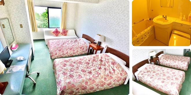 ・お部屋の広さ 13畳 ・定員 1〜3名 ・ベッドサイズ シングルベッド(100cm×200cm)×2 ソファーベッド×1・チェックイン・チェックアウト 16:00/10:00※21:00過ぎにチェックインの場合は必ずご連絡下さい。・高速インターネット環境 接続無料 Wi-Fiルーター貸出